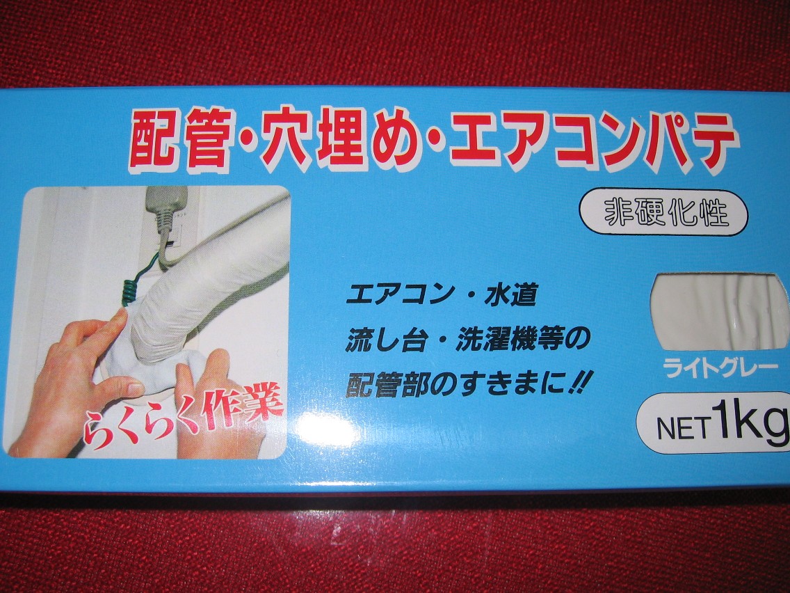 隙間をふさいでいたのです。この粘土、エアコン用パテというのですね。ホームセンターにある