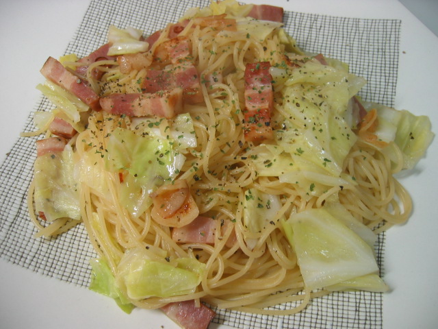 ベーコンとキャベツをプラス。