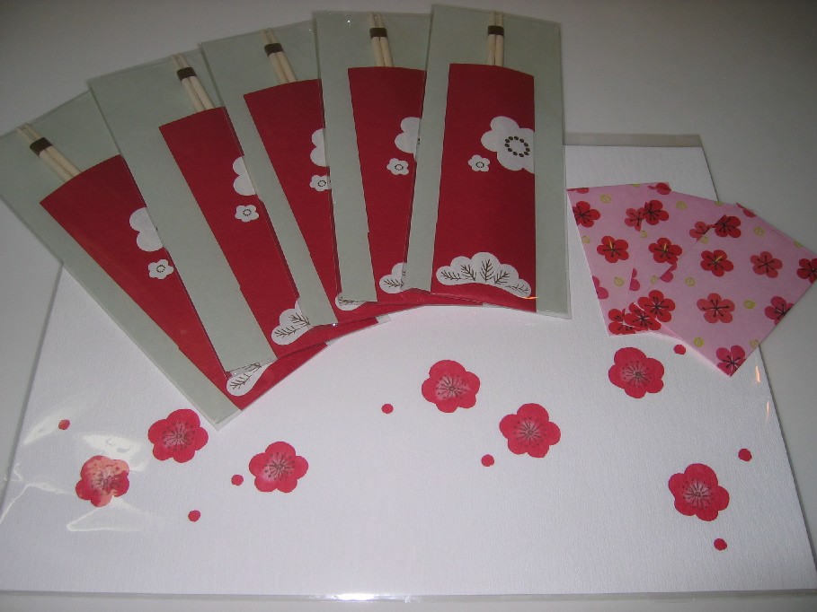 祝い箸、そしてポチ袋。梅の形が