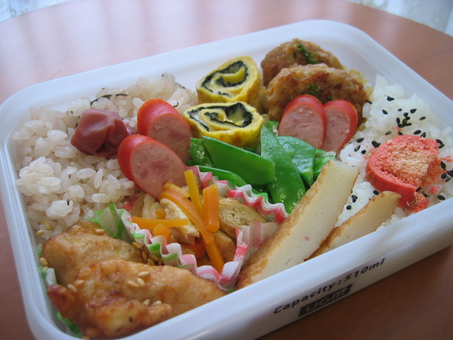 こういうおべんと箱の時は、ご飯も思いつくまま