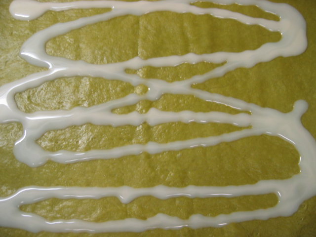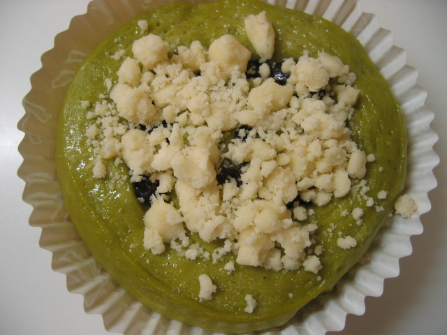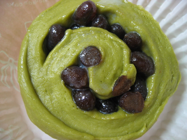 抹茶入りの生地にしましたよ。