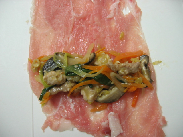 豚肉で包んでみました。