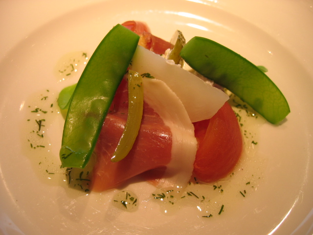 まずは前菜。いちじくと生ハム、