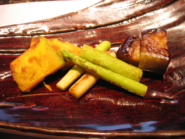 焼き野菜はかぼちゃとアスパラ、