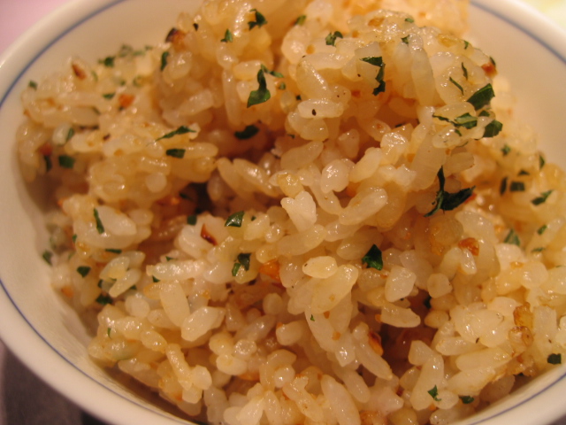 岩塩とにんにくチップをのっけて
