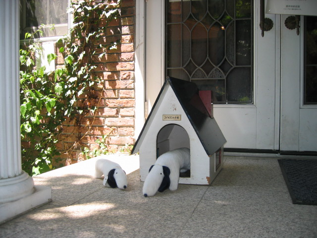 玄関先ではぬいぐるみの