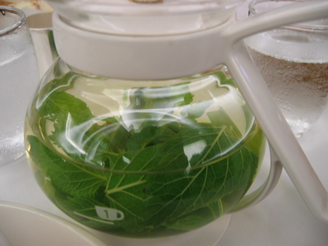 お供はたっぷりのハーブティー。