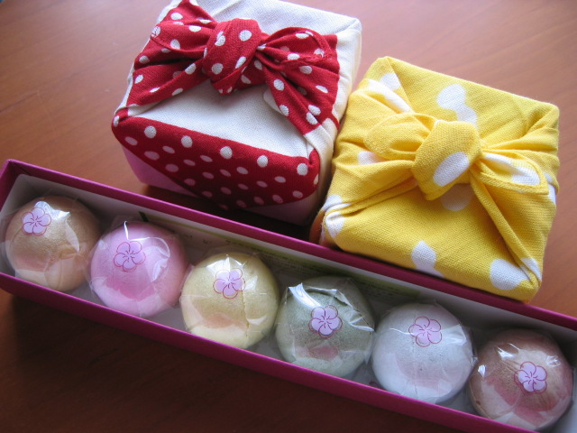 六色の最中。豆てぬぐいは