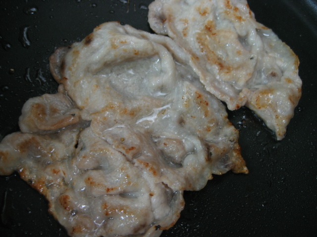 豚肉をこんがり焼きます。