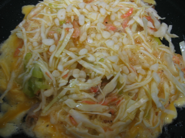 これをヒントに、今日はお好み焼き風オムレツを