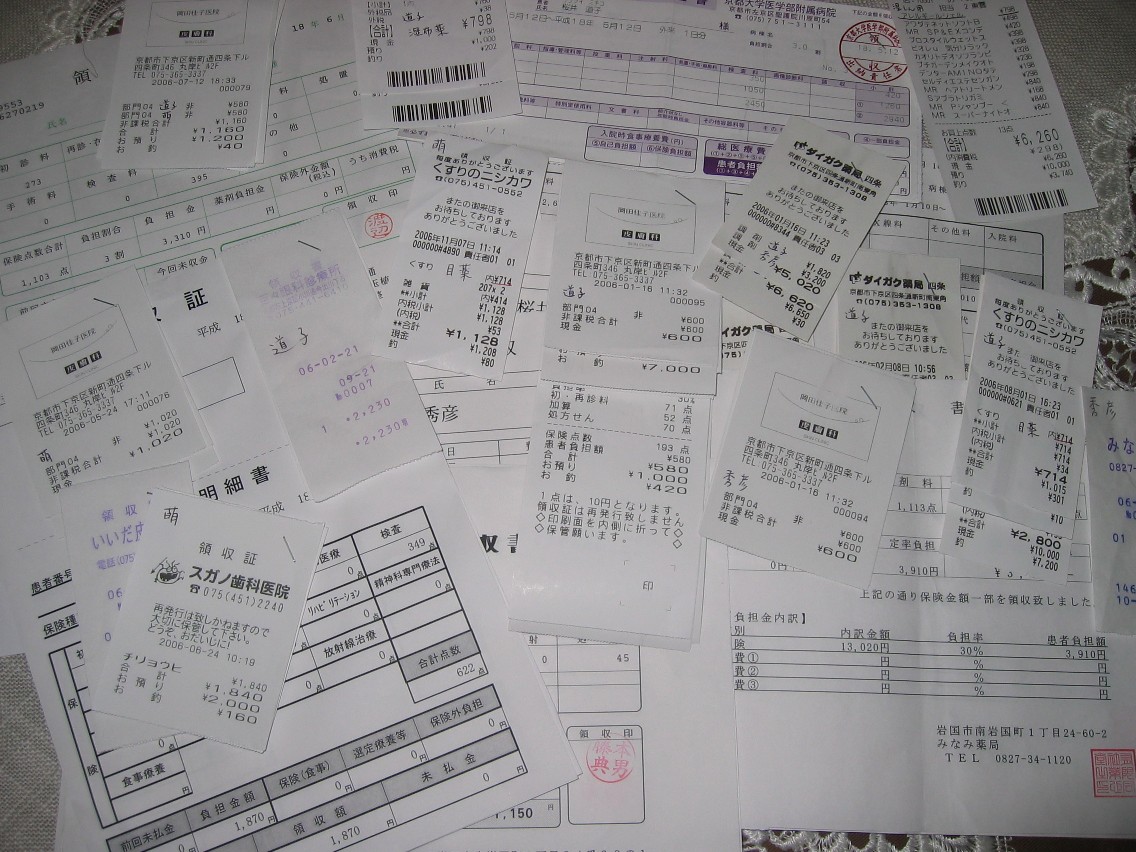 医療費の領収書の山です。