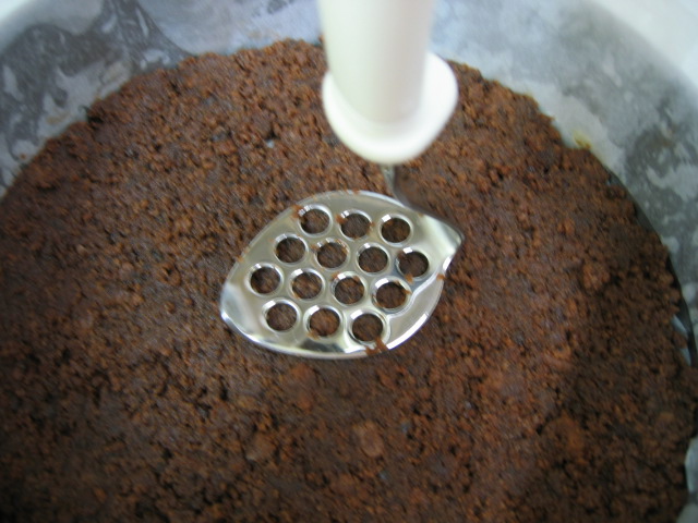 マッシャーで型にぎゅっぎゅっ。