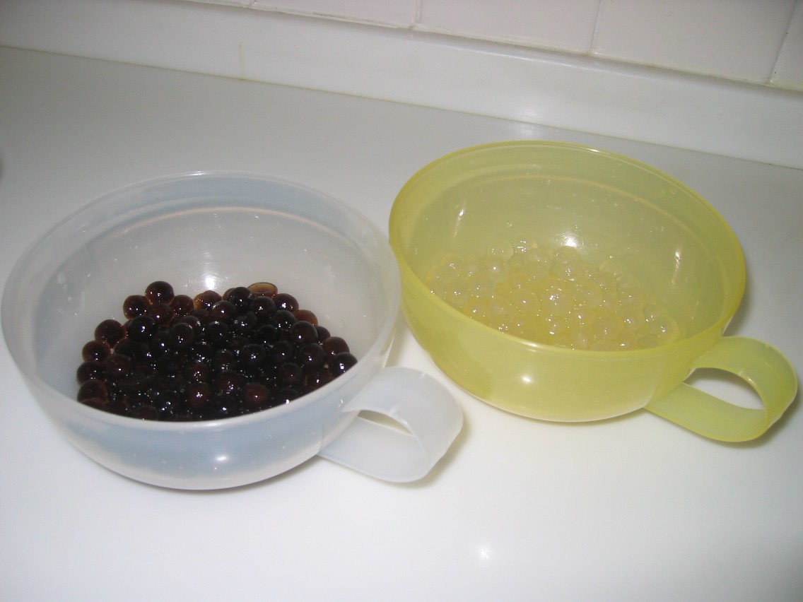 ブラックタピオカと普通のタピオカ。
