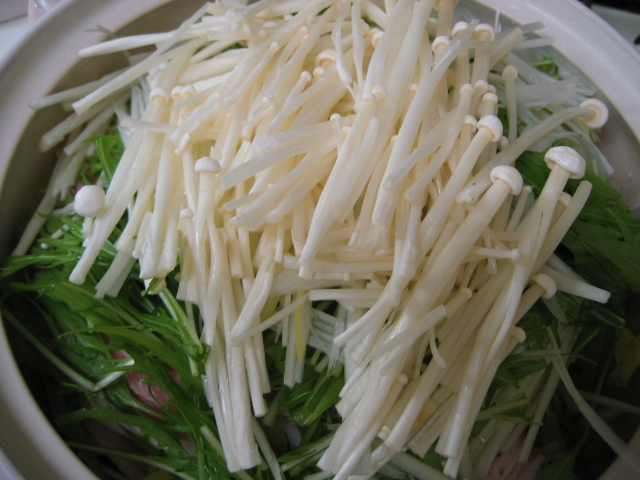 ねぎ、えのきをどんどん積み上げて