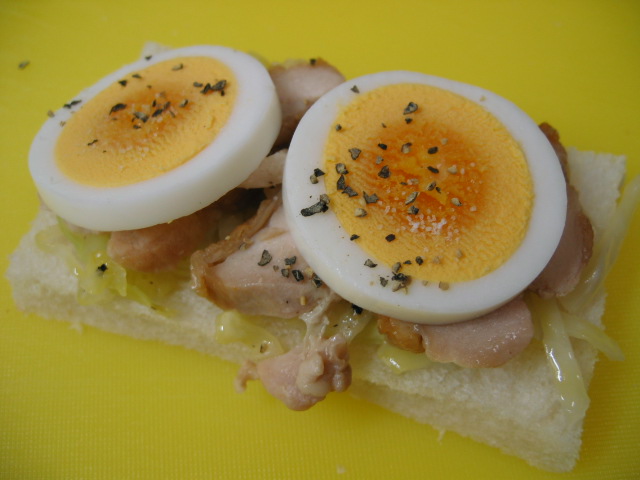 テリヤキチキン、ゆで卵。