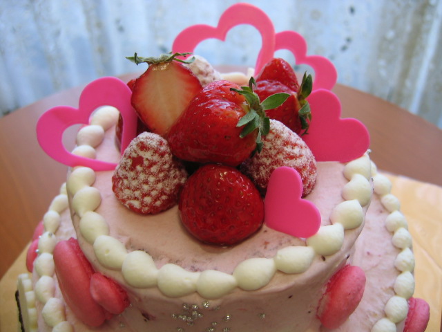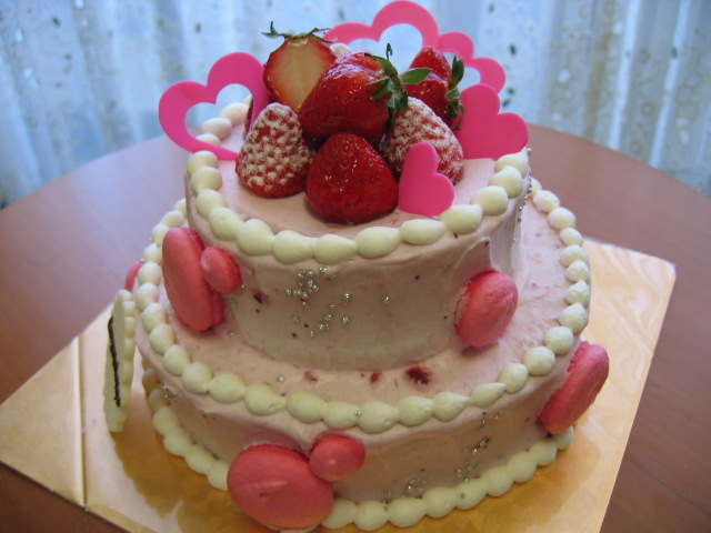 お祝いのケーキはピンク色。