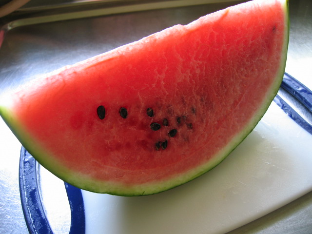 食後はスイカを半分こ。