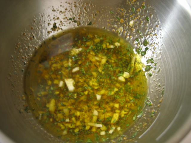 みじん切りのにんにく、パセリ、