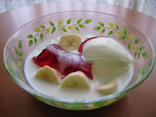 このゼリーには牛乳をかけて
