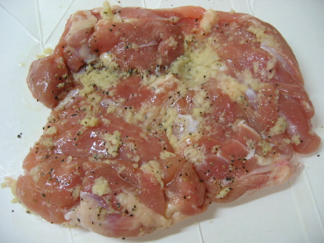 鶏もも肉に塩、こしょう、おろし