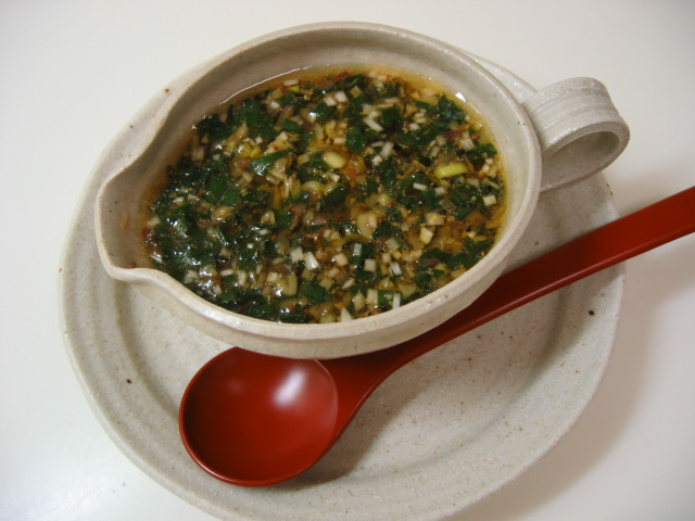 酢醤油ベースのたれに、ニラや
