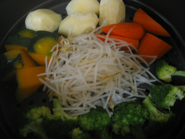 蒸し野菜を用意。火の通り具合