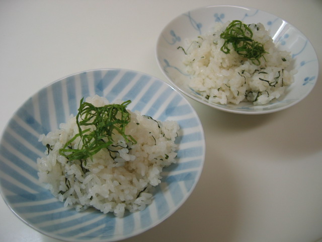 青じそご飯は、塩と酒、昆布で炊いたご飯に