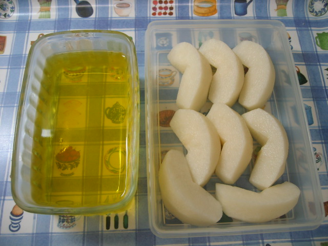 冷蔵庫には梨とインスタントの