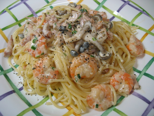 お昼は海老ときのこのクリーム
