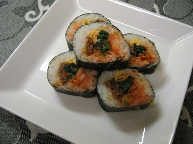 今日のお昼は大好きな韓国風海苔巻き。