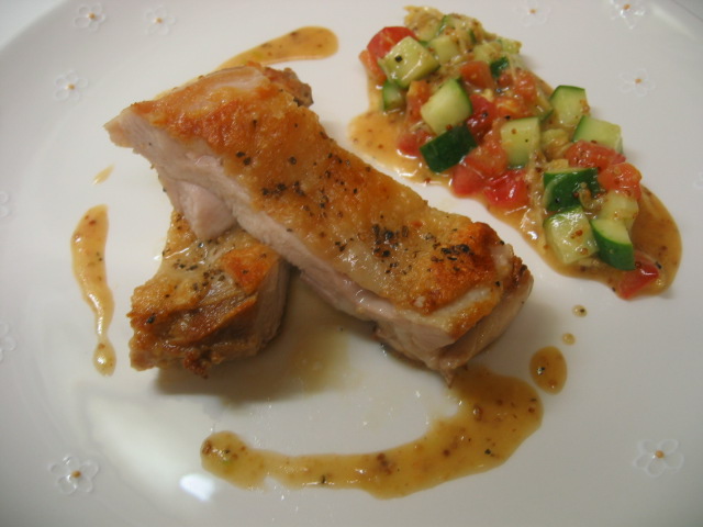 チキンソテーに夏野菜のソースを
