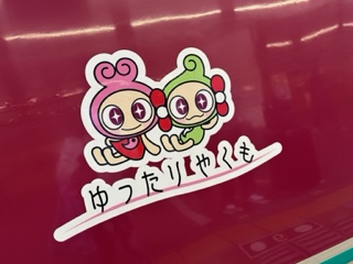 座席の横の壁には縁結びの国