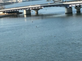 車窓から眺める宍道湖。
