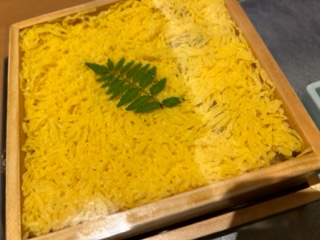木箱の蓋を開けると、錦糸卵