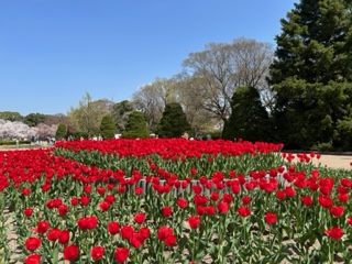 まずは真っ赤なチューリップが
