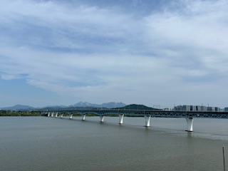広大な漢江の景色を眺めながら